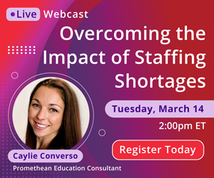 Join Promethean and its education partners on 3/14 at 2 PM ET for an open conversation about the impact of staff shortages, how the role of an educator is changing, and how technology is continuing to support the needs of teachers and students.